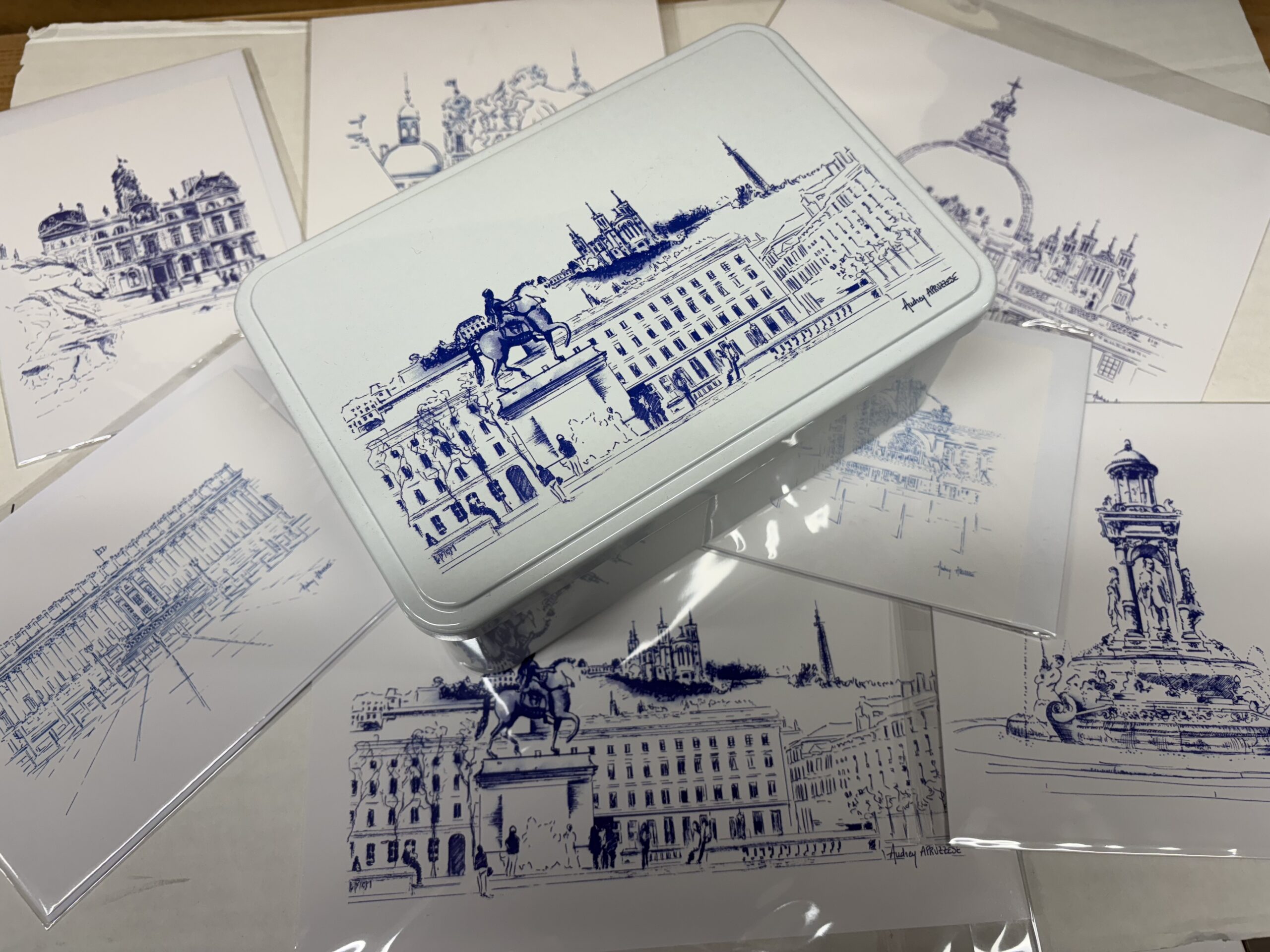 Cette boîte rend hommage à la capitale de la gastronomie, avec une illustration originale réalisée par une artiste locale, Audrey Apruzzese, Dessinatrice Patrimoine Lyonnaise