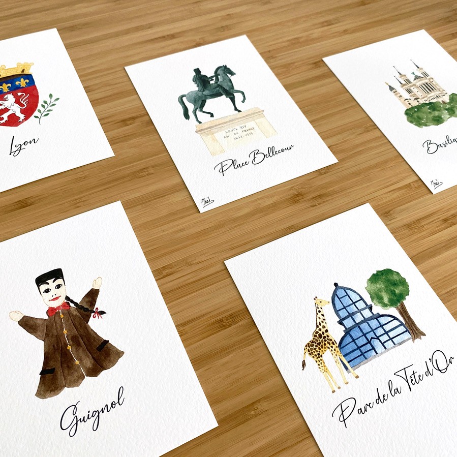 Découvrez le travail d’Inès, illustratrice aquarelliste, au travers d’une collection d’affiches et de cartes mettant à l’honneur Lyon.