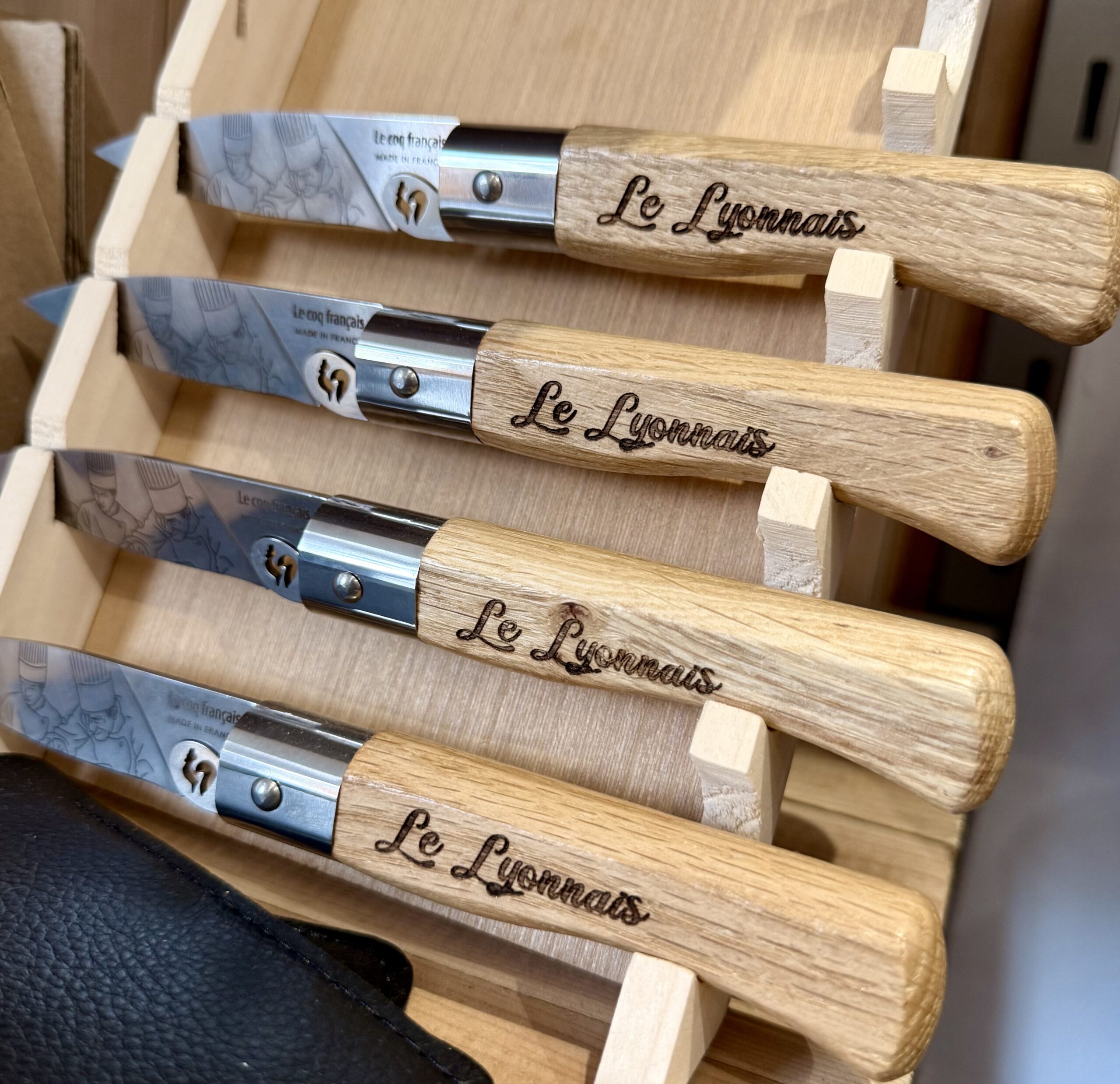 Découvrez notre couteau 100% lyonnais ! Originalité de la lame avec le visuel de chefs cuisiniers, ce couteau est idéal pour les collectionneurs. Taillé en bois vernis et lame acier/inox pour un rendu simple mais élégant.