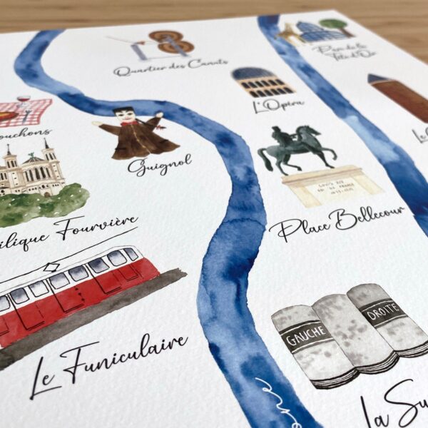 Affiche carte illustrée Lyon : A3 / 40g