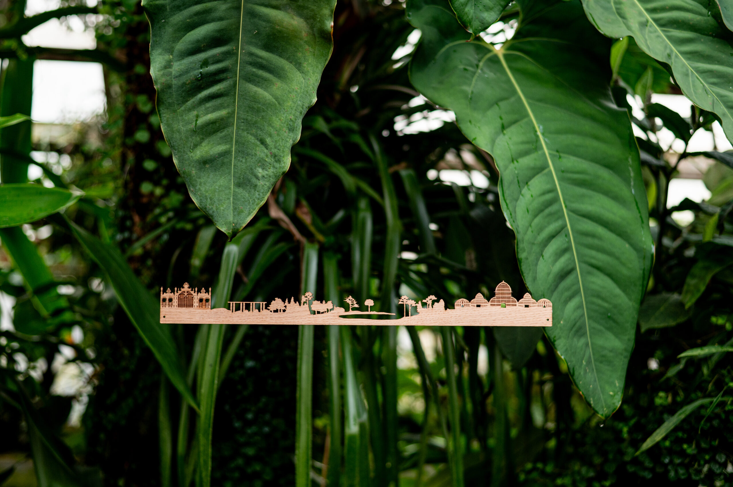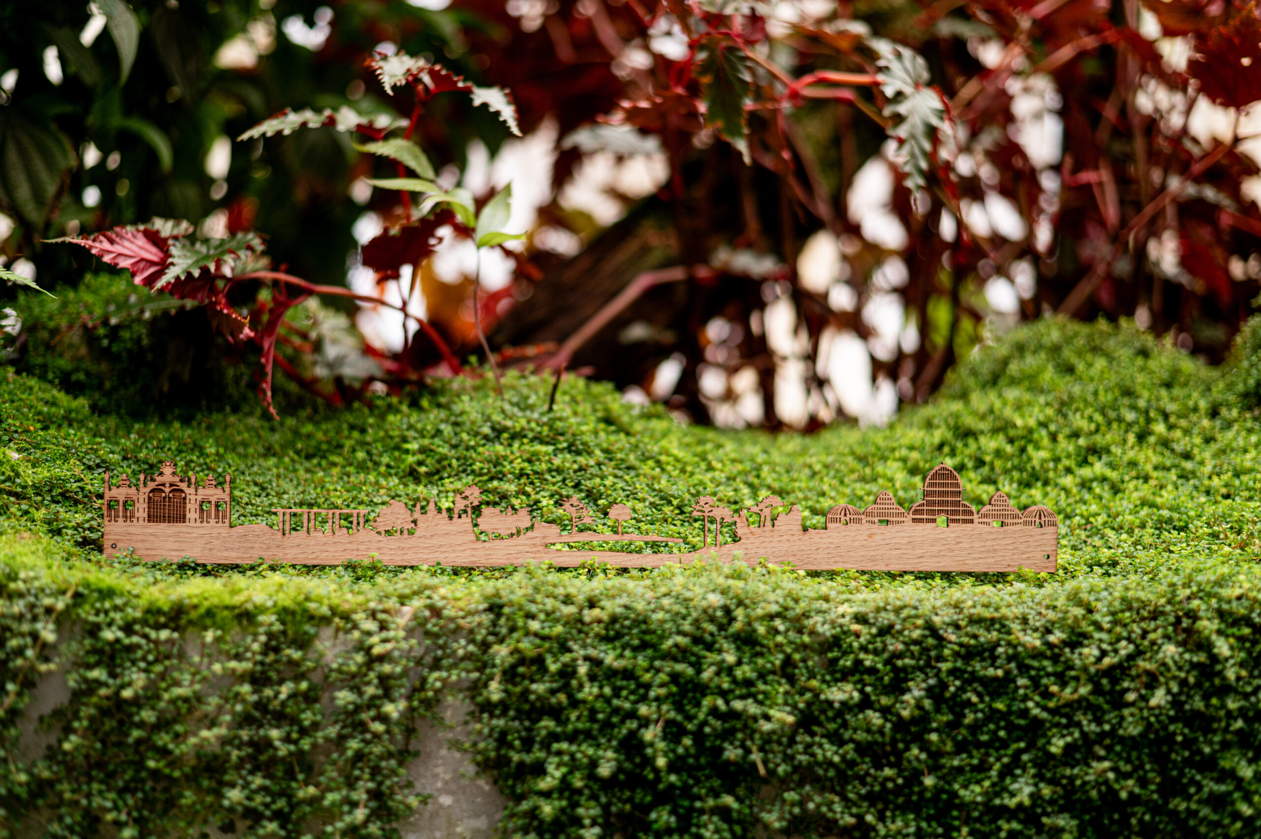 Réalisée en bois noble, cette skyline rend hommage à la beauté du Parc de la Tête d’Or et à la silhouette unique de Lyon.